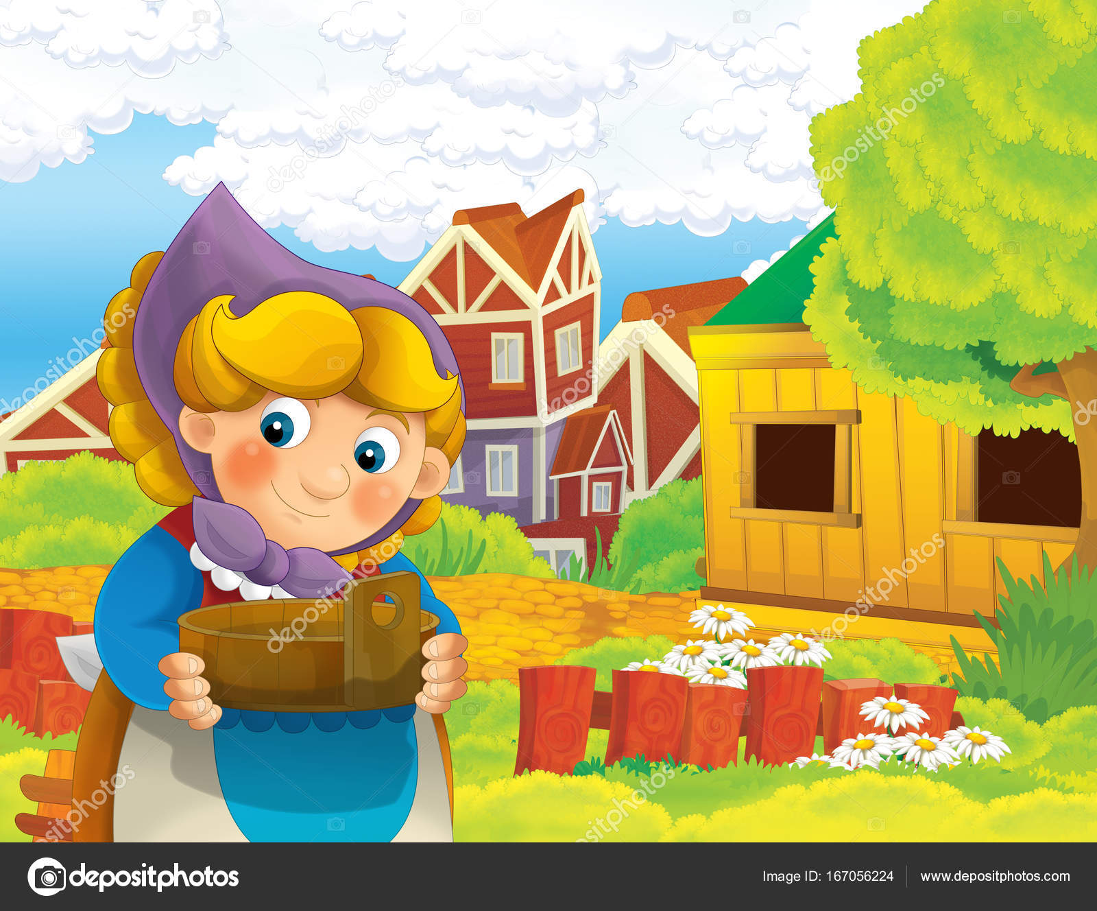 Scène Bande Dessinée Avec Heureuse Femme Travaillant Ferme